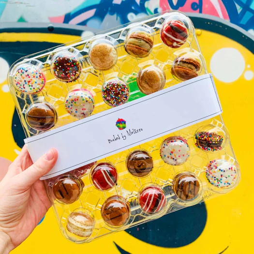 This tie-dye gift box is packed with gluten-free treats—choose from our OMGF cupcake collection or macarons made without gluten.